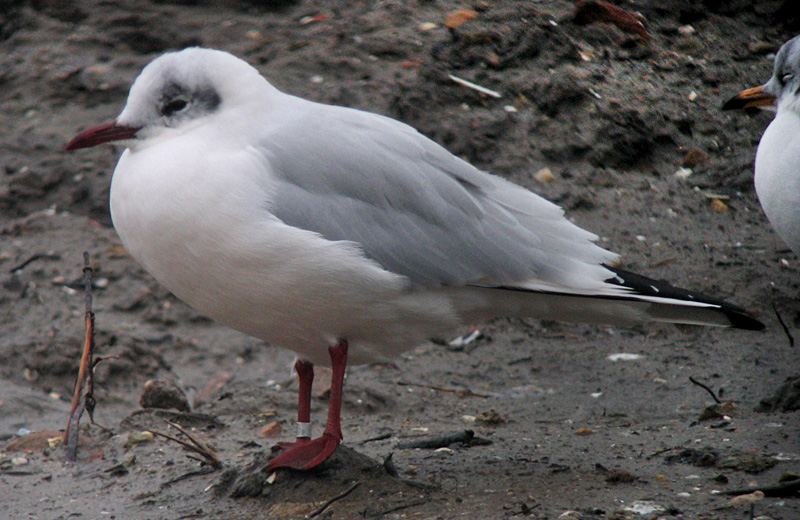 Below: Adult Black-headed Gull Bruxelles 5T77922, January 1, 2011, Haven, Leiden, The Netherlands (52.161N, 4.500E). Photo: Maarten van Kleinwee.